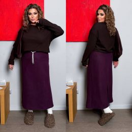 Тепла спідниця на холодну пору , покрою трапеція , талія на резинці та шнурку .