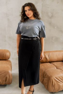 Ця джинсова спідниця – сміливий вибір для тих, хто не боїться привертати увагу. Її унікальний крій створює нестандартний, але дуже привабливий силует, додаючи динаміки та виразності образу. Спідниця застібається на два стильні ґудзики, які стають не лише функціональним елементом, але й декоративним акцентом.Еластична гумка на талії ззаду забезпечує комфорт та ідеальне прилягання, адаптуючись до ваших рухів та підкреслюючи лінію талії. Вона чудово поєднується як з простими футболками для створення повсякденного образу, так і з елегантними блузами, щоб додати трішки енергії до більш формального стилю. Це спідниця, яка говорить про вашу індивідуальність і сміливість
