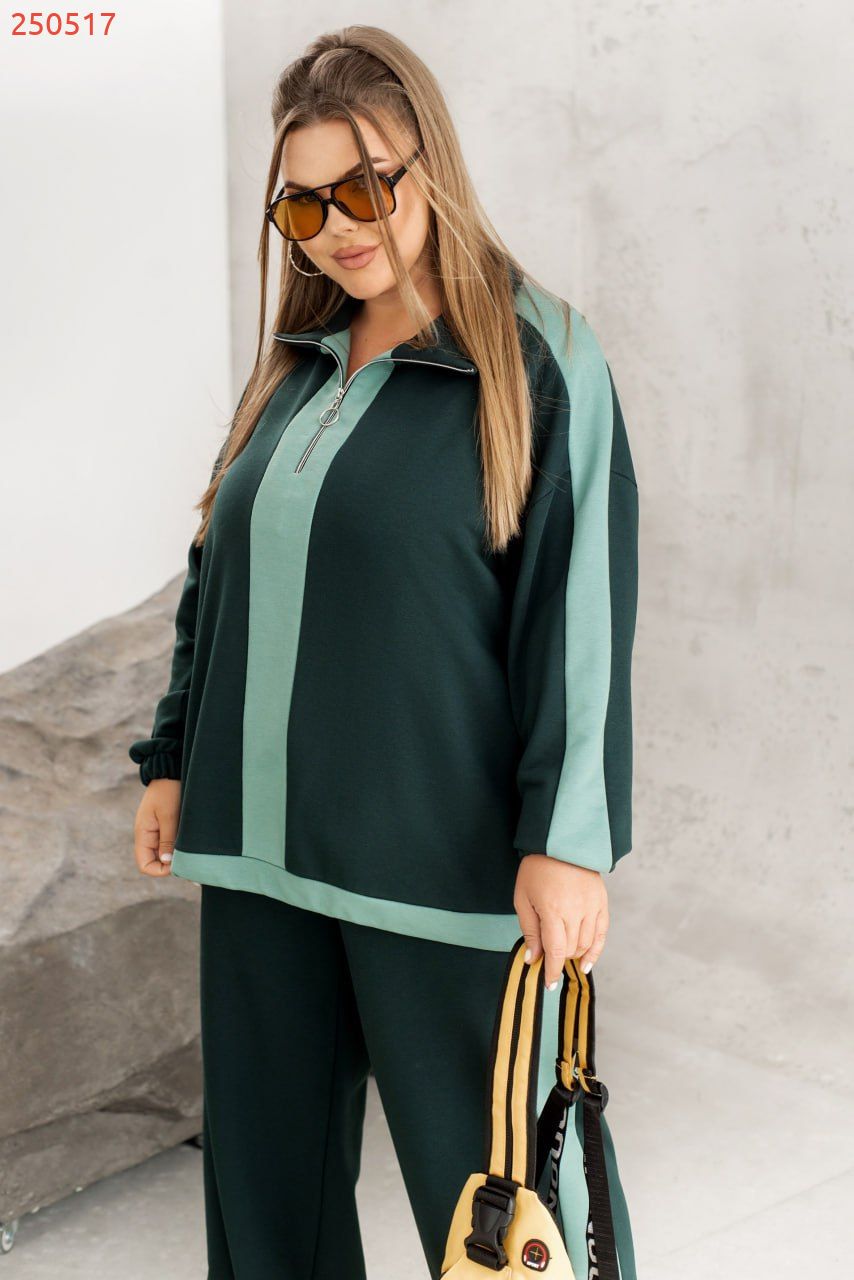 Твій повсякденний стиль і комфорт – це наш новий костюм.Кофта з акцентними вставками підкреслює модний образ, невеликий комір-стійка та блискавка додають зручності, а рукава зі заниженою лінією плеча і затяжки знизу дарують ідеальну посадку. Штани вільного крою з акцентними вставками, еластичною талією та бічними кишеньками завершують образ, роблячи його зручним для будь-якого дня. Тренд, свобода рухів і практичність – все в одному костюмі!