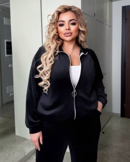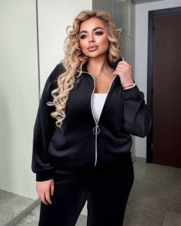 Спортивний костюм з велюру чорного кольору №254223