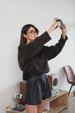 Стильні шортики з еко шкіри чорні №254256