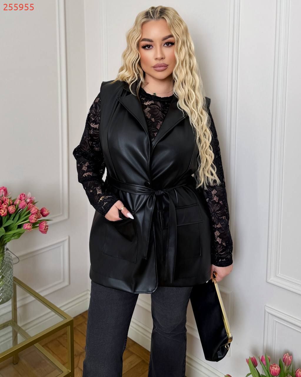 Матеріал: Мереживний лонг+ подовжена жилетка з еко шкіри