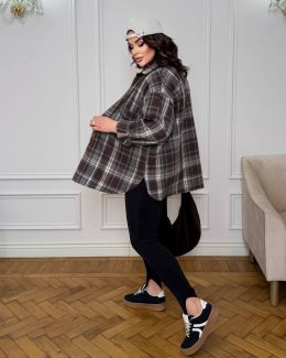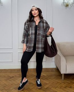 Стильна сорочка в клітинку шоколад №255053