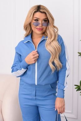 Стильний брючний костюм з еластичної тканини для тих, хто любить баланс комфорту й елегантності. Кофта та штани оздоблені лампасами: кофта на блискавці по всій довжині з прорізними кишенями та еластичним манжетом внизу. Штани середньої посадки з еластичною резинкою на поясі у стилі палаццо – витягують силует і пасують до будь-якого взуття, від кросівок до лоферів.
