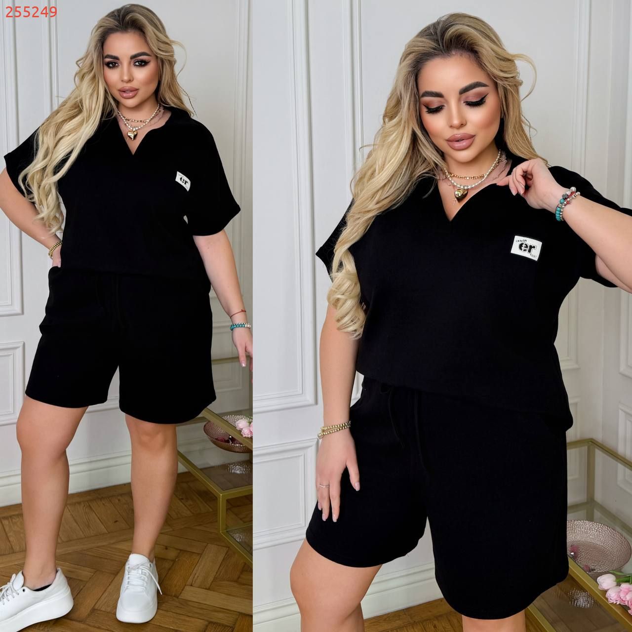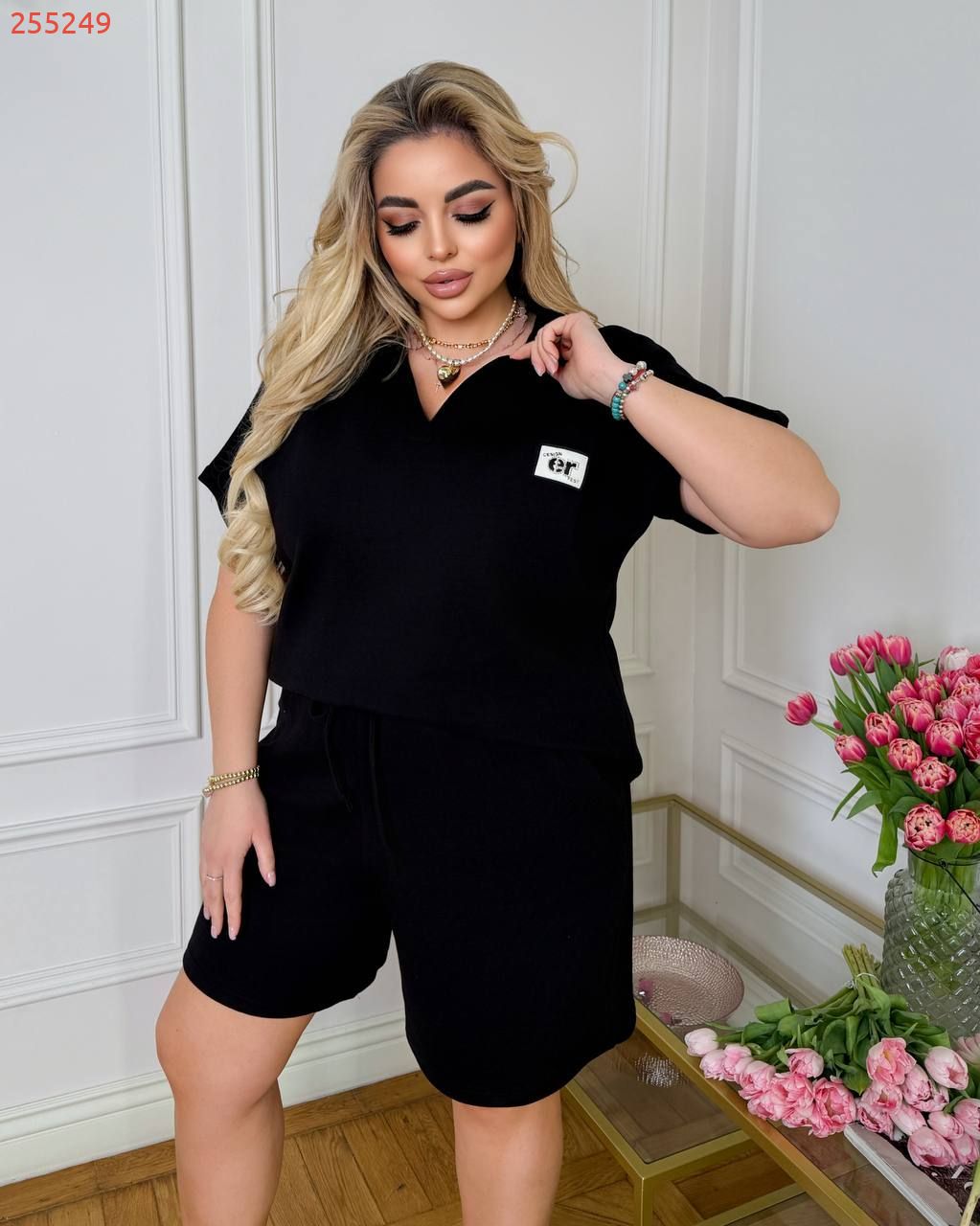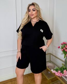 футболка поло у стилі оверсайз + шорти з високою посадкою з кішенями у бічних швах, з куліскою на поясі)