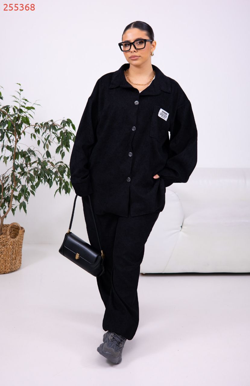 Стильний костюм з оверсайс сорочки на ґудзиках та джокерів на широкому поясі