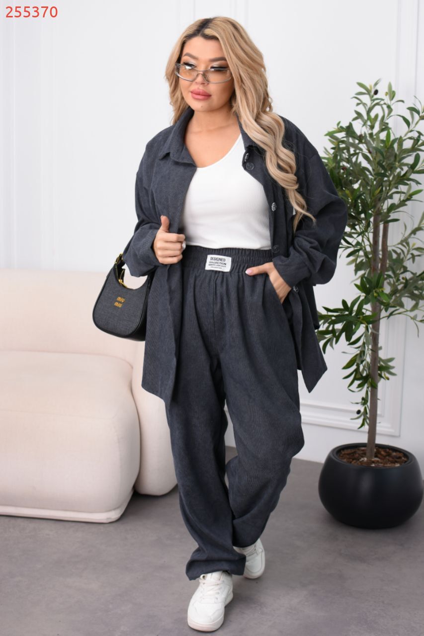Стильний костюм з оверсайс сорочки на ґудзиках та джокерів на широкому поясі