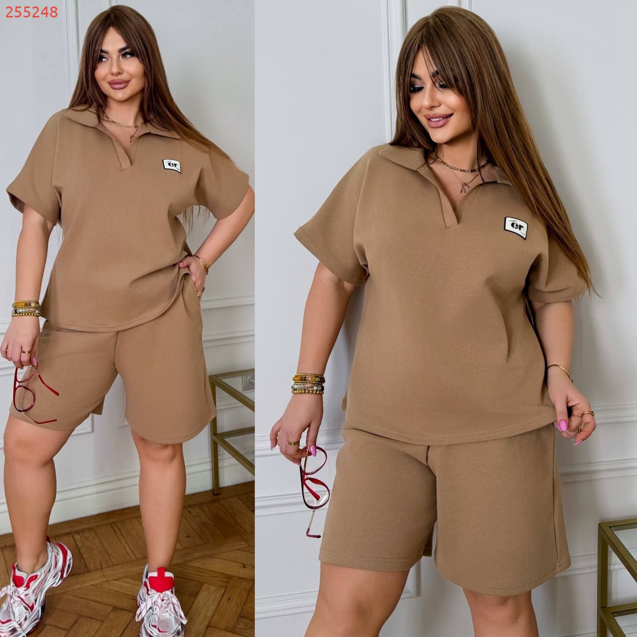 футболка поло у стилі оверсайз + шорти з високою посадкою з кішенями у бічних швах, з куліскою на поясі)