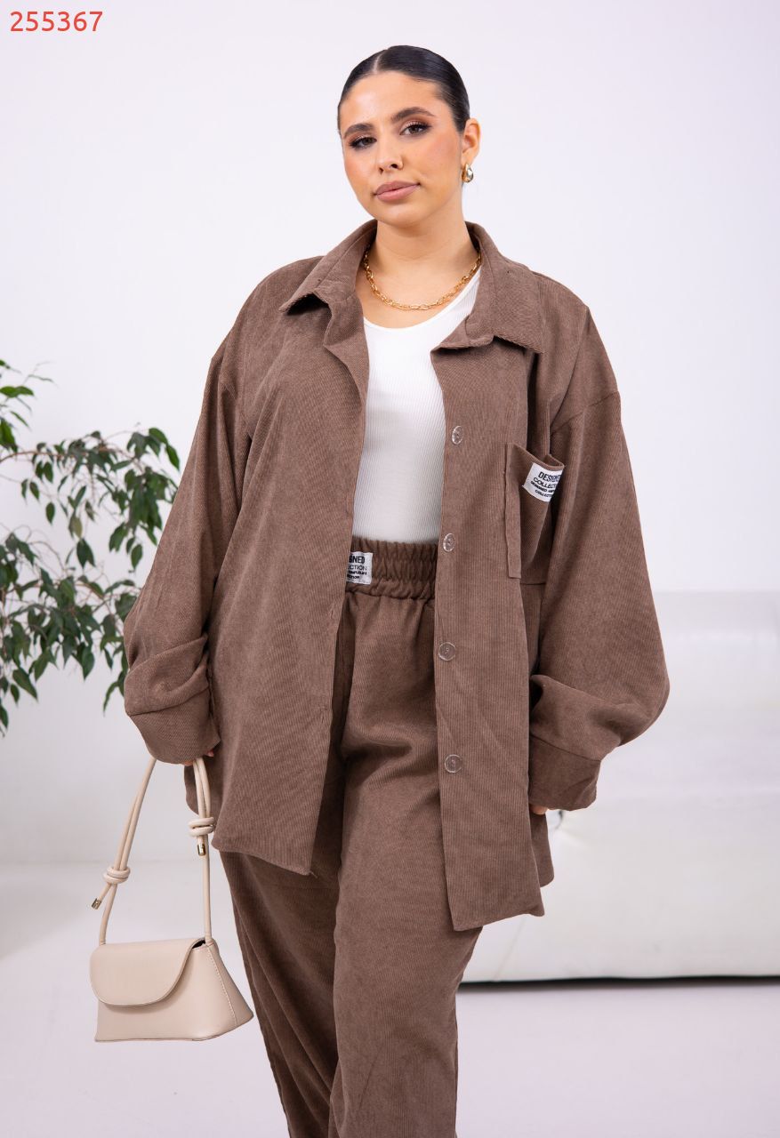Стильний костюм з оверсайс сорочки на ґудзиках та джокерів на широкому поясі