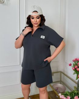 футболка поло у стилі оверсайз + шорти з високою посадкою з кішенями у бічних швах, з куліскою на поясі)