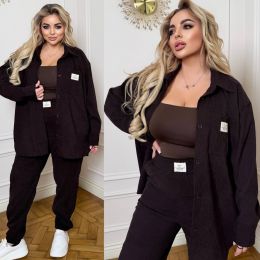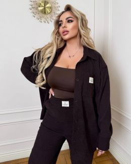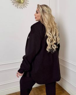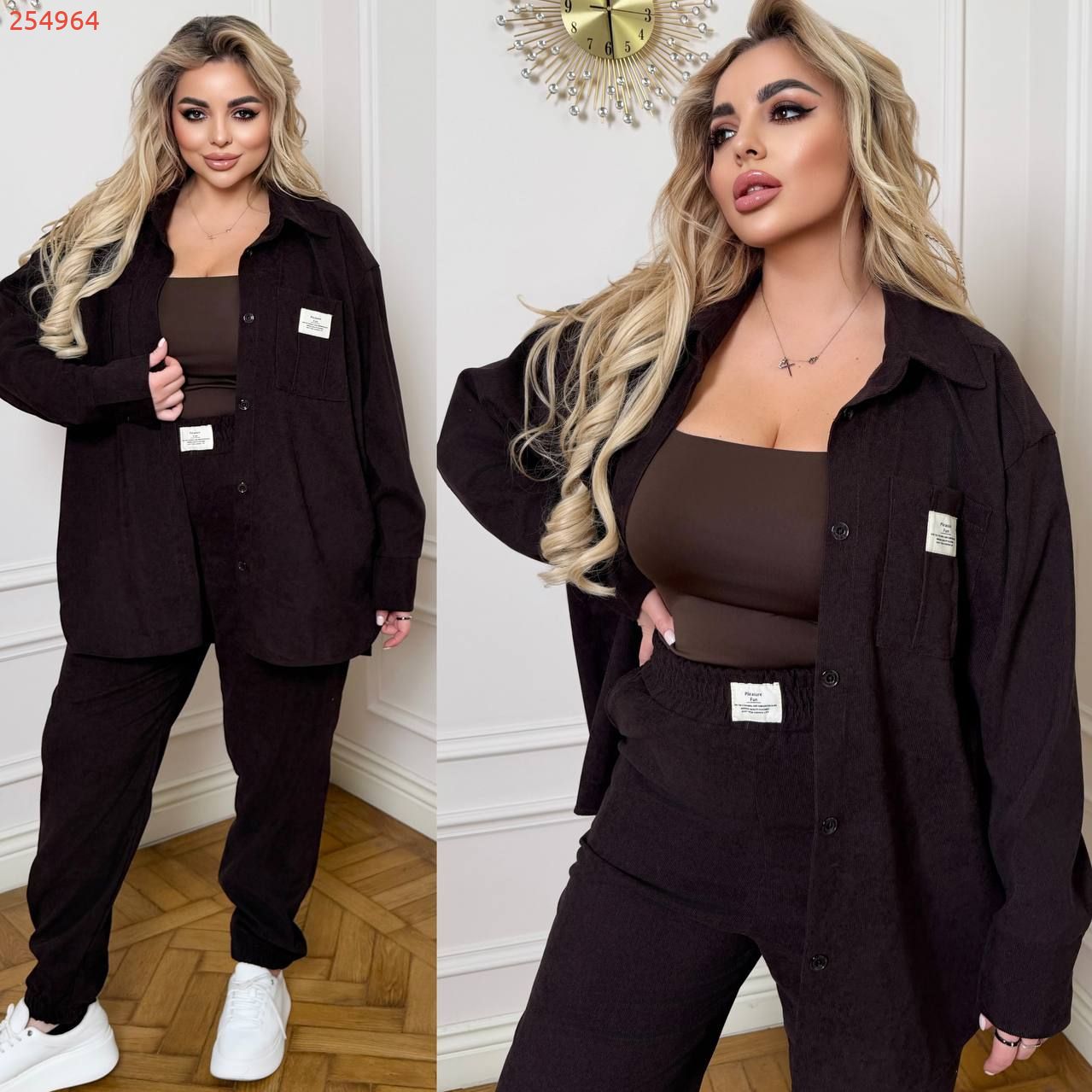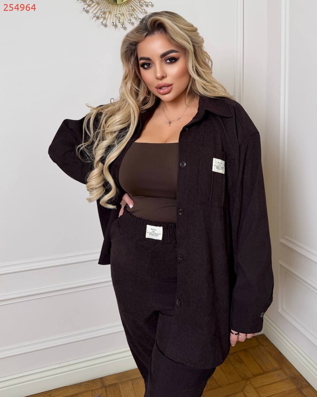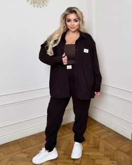 Стильний прогулянковий костюм із мікровельвету: Сорочка вільного крою на гудзиказ, з робочими кишенями + джогери з високою посадкою з кишенями у бічних швах. На поясі та знизу на гумці.