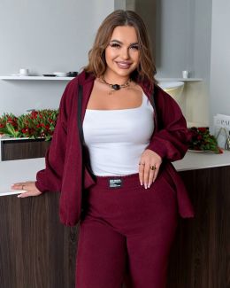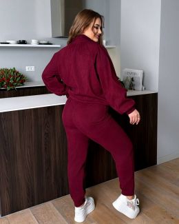 Стильний костюм з мікровельвету бордовому кольору №254232
