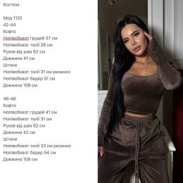 Стильний практичний костюмчик з велюру. Приємна мʼяка тканина, тягнеться. На костюмі є пришивна, як на фото. Також лонг йде з розрізом на пальчику. Штани йдуть вільні, на резинці в талії та шнурочком.