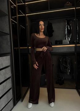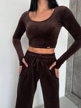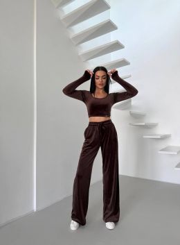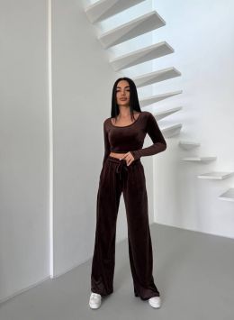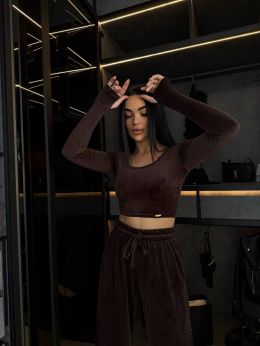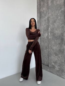 Стильний практичний костюмчик з велюру шоколад №254538