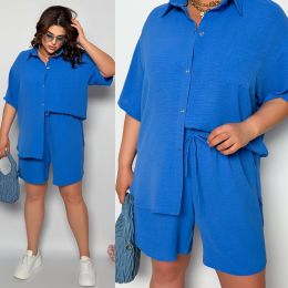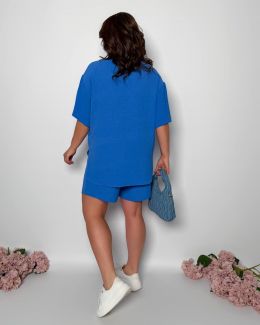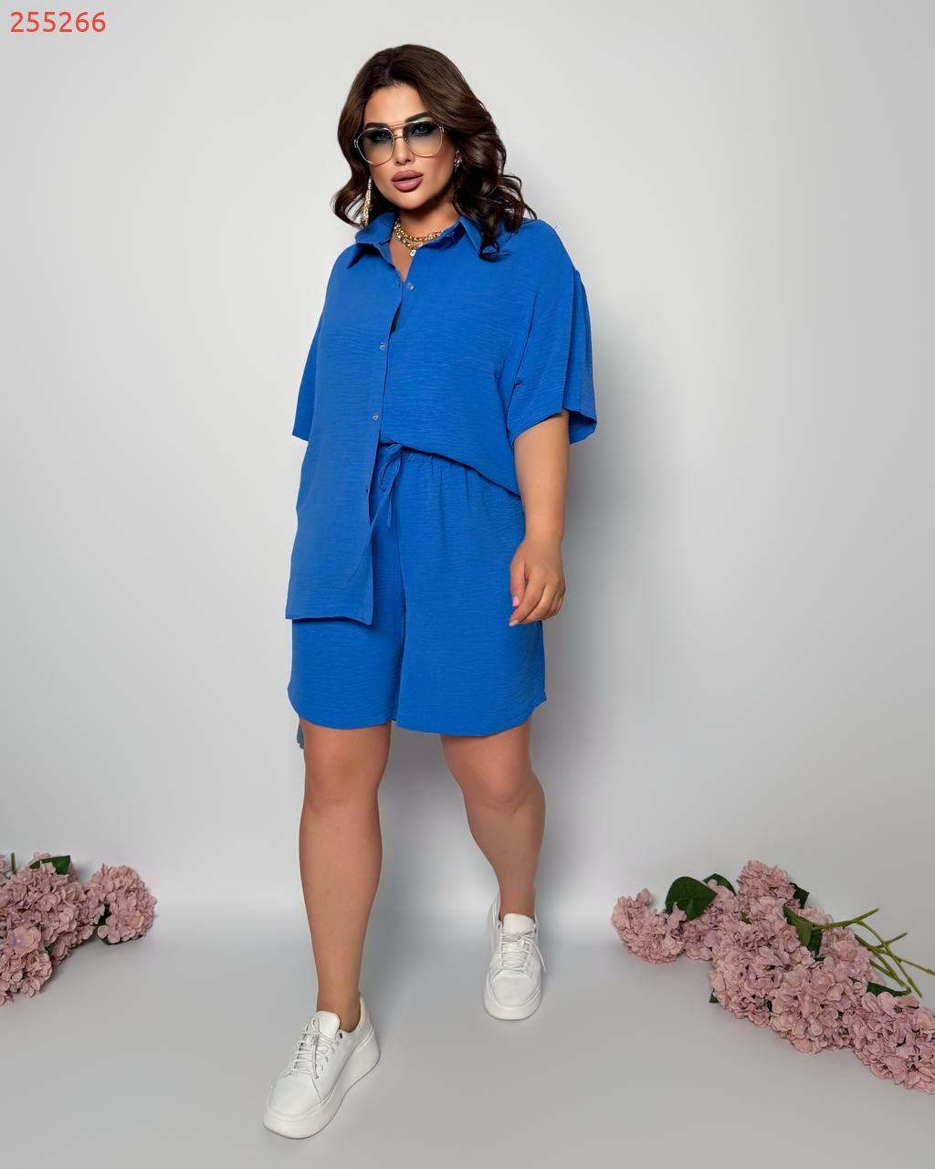 Стильний прогулянковий костюм з креп софту: Сорочка на гудзиках з кишенею , по низу з розрізами по боках + шорти з високою посадкою на гумці, з кишенями у бічних швах