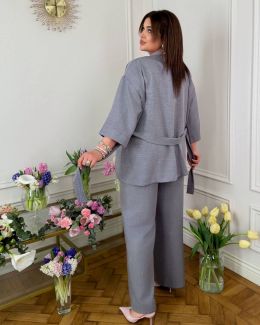 Стильний прогулянковий костюм зі льону «Бохо» сірий №255604