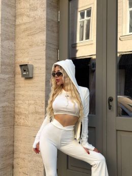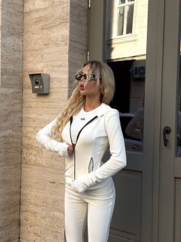 Стильний та комфортний костюм із мʼякого велюру білий №255514