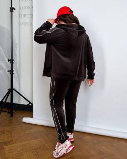Штани висока посадка, вільного крою прикрашені стрічками , що візуально витягую ніжку.Мають еластичний пояс що забезпечує відмінну посадку та комфорт при русі. У штанах є кишені в бокових швах . На штанах стильні лампаси які, гарно поєднуються .Спортивний костюм доступний у різних кольорах та розмірах, що дозволяє вибрати відповідний варіант для кожного клієнта. У цьому костюмі ви будете себе відчувати комфортно, підійде для прогулянок, заняття спортом або просто для відпочинку