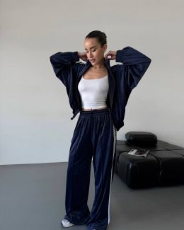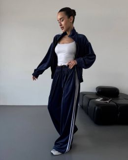 Стильний зручний костюм з лампасами на змійці, в стилі оверсайз. Мʼякий приємний до тіла велюр. Кофта знизу на резиночці. Штани з кишенями та знизу мають фіксатори, для зручності регулювання.