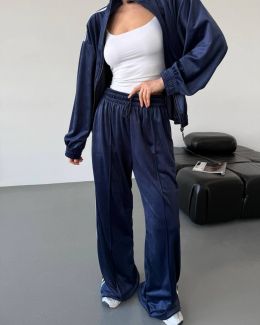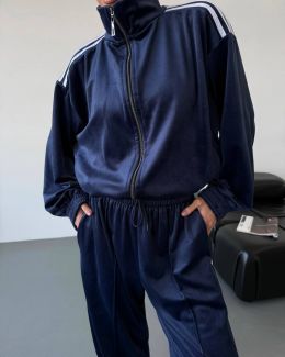 Стильний зручний костюм з лампасами на змійці синій №255867