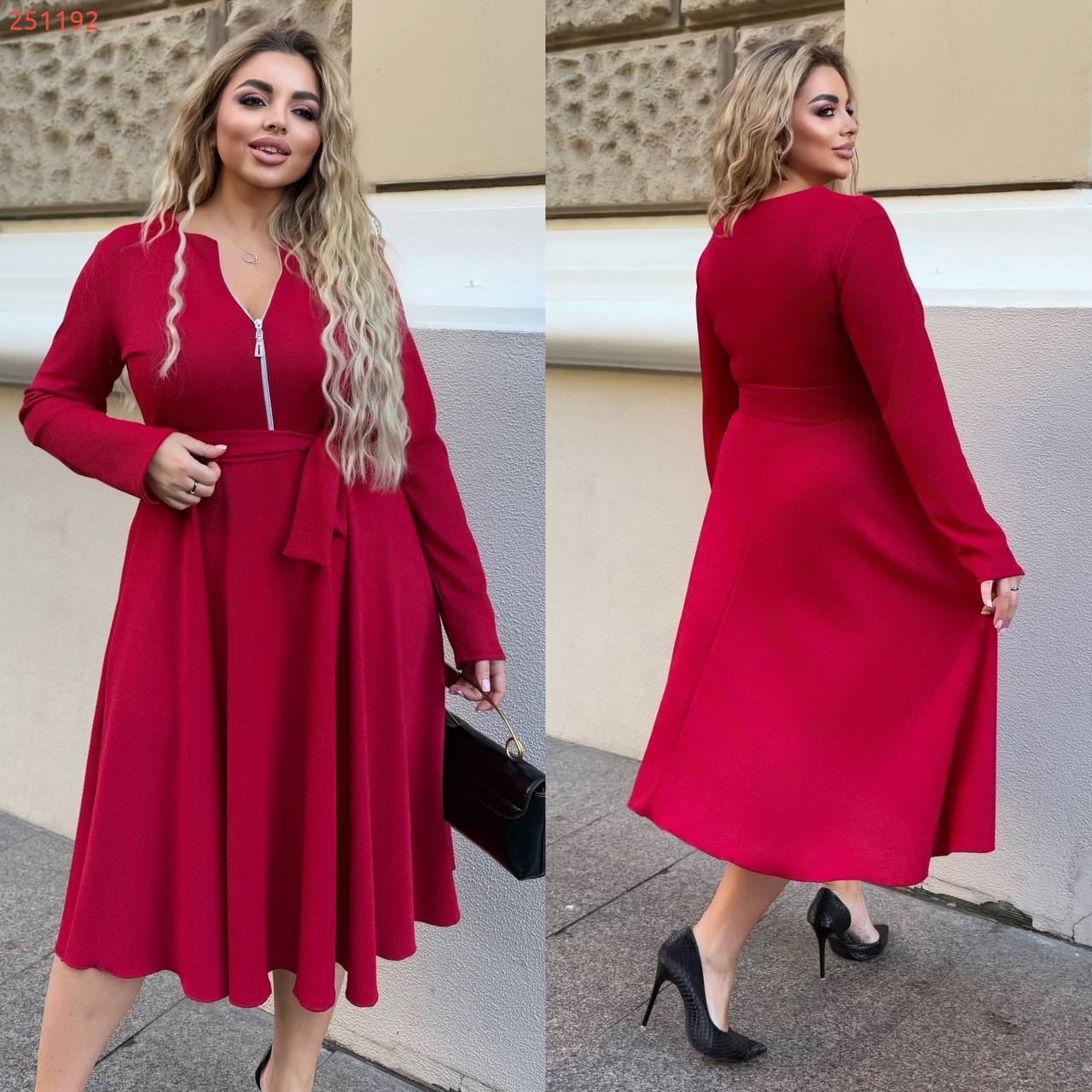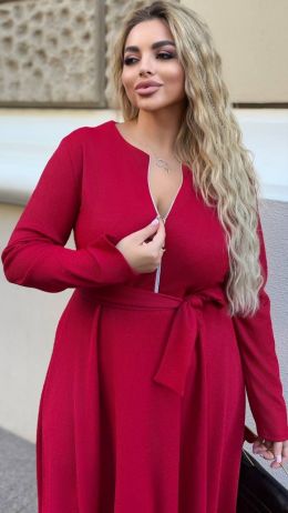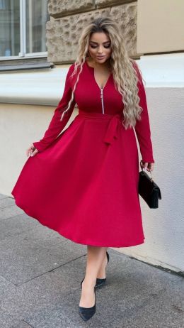 Яскрава сукня з пишною спідницею , з переду на блискавці , пояс з основної тканини .