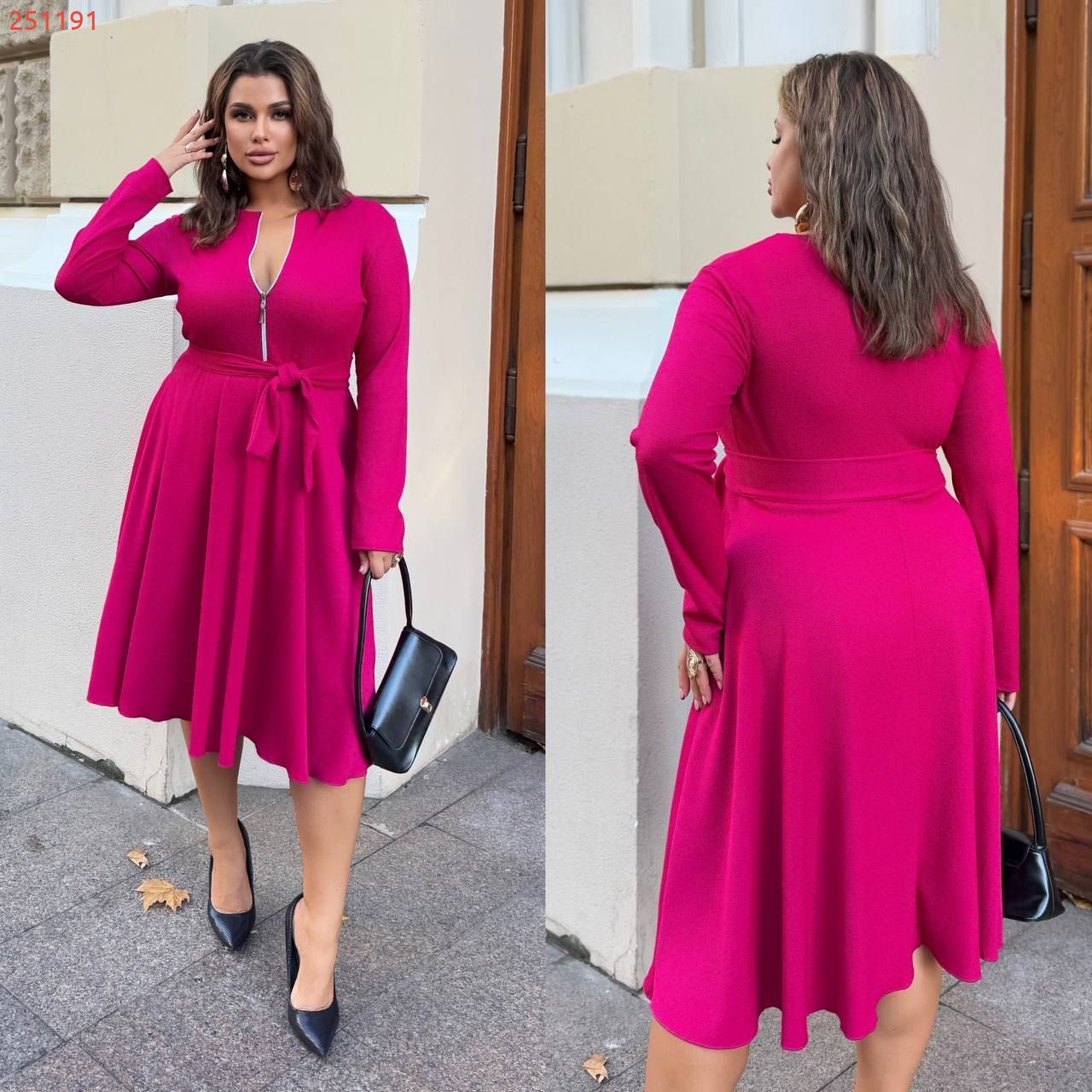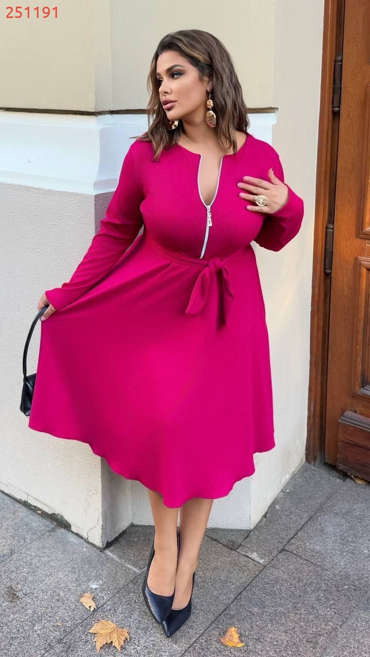 Яскрава сукня з пишною спідницею , з переду на блискавці , пояс з основної тканини .