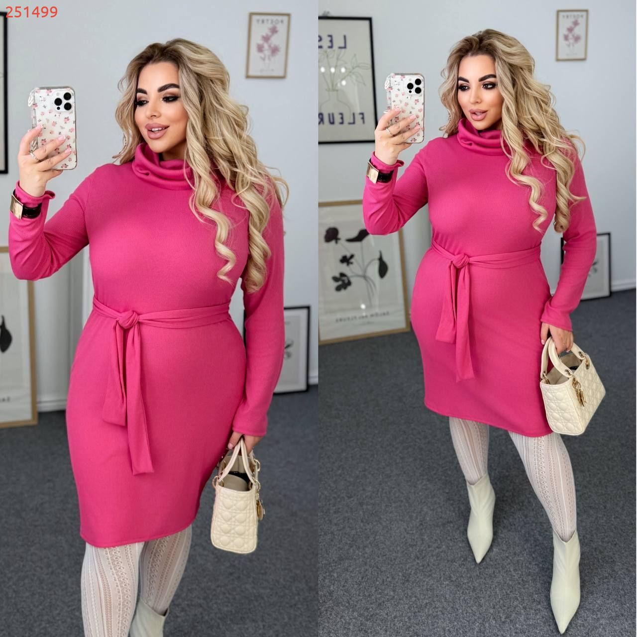 Яскрава сукня приталеного покрою , з обʼємним коміром , пояс з основної тканини .