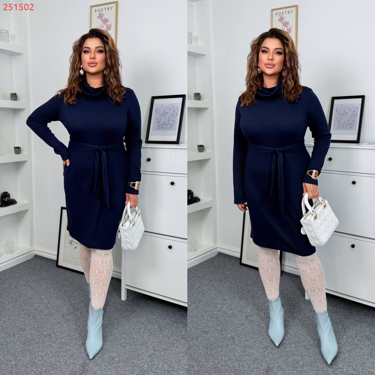 Яскрава сукня приталеного покрою , з обʼємним коміром , пояс з основної тканини .
