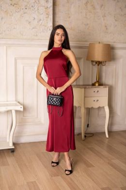 Елегантна шовкова сукня максі зі стійкою та акцентом на відкритій спині. Струменева тканина підкреслює силует, а зав'язки на шиї додають витончену деталь. Лаконічний крій робить модель ідеальною для вечора, зйомки або урочистого виходу.
