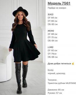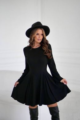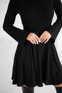 Стильна сукня в рубчик з приталеним верхом та розкльошеною спідницею, що гарно підкреслює талію. Довгий розкльошений рукав додає образу витонченості, а класичний круглий виріз зберігає стриманий та жіночний стиль. Справжній must-have сезону для святкових виходів та особливих моментів.