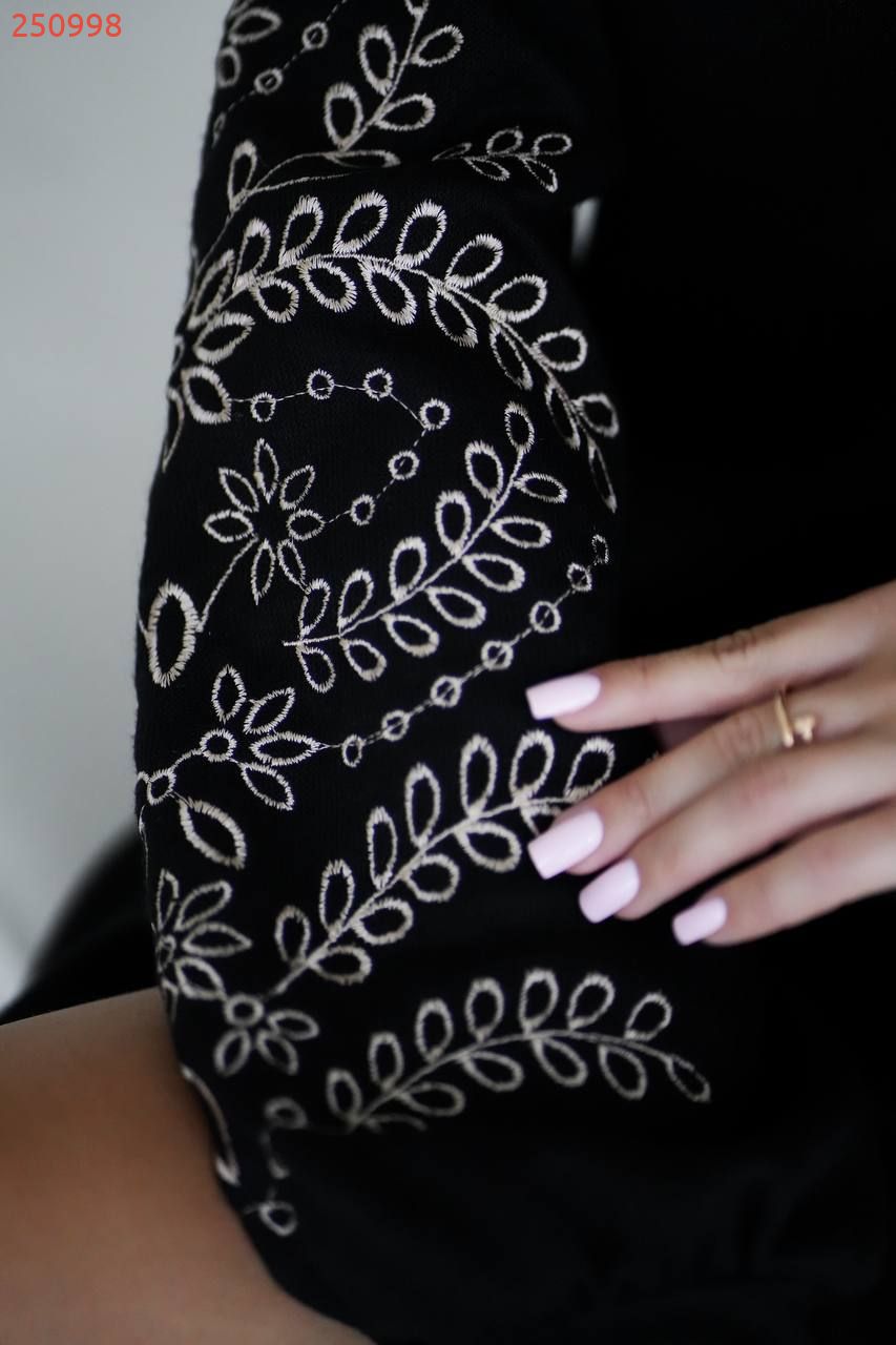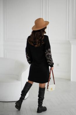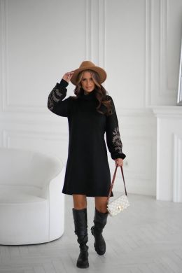 Трикотажна сукня з високим горлом і вишитими рукавами – ідеальне поєднання тепла та елегантності.