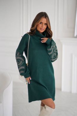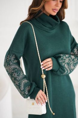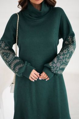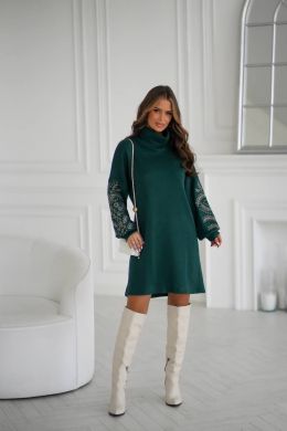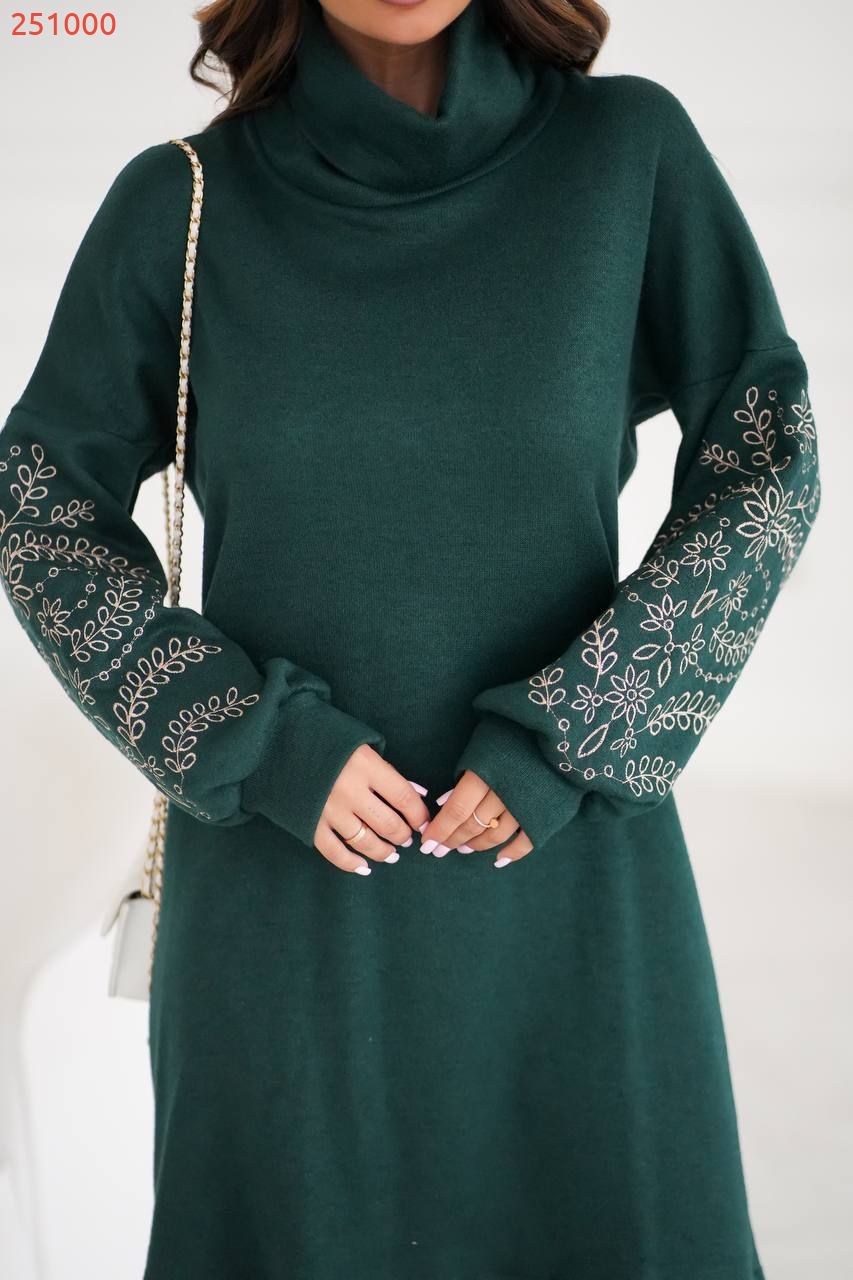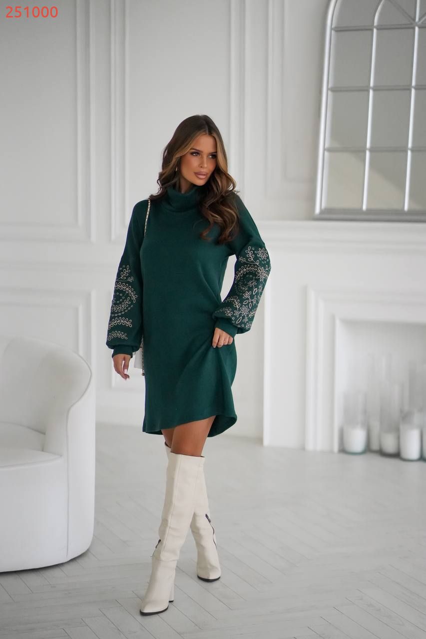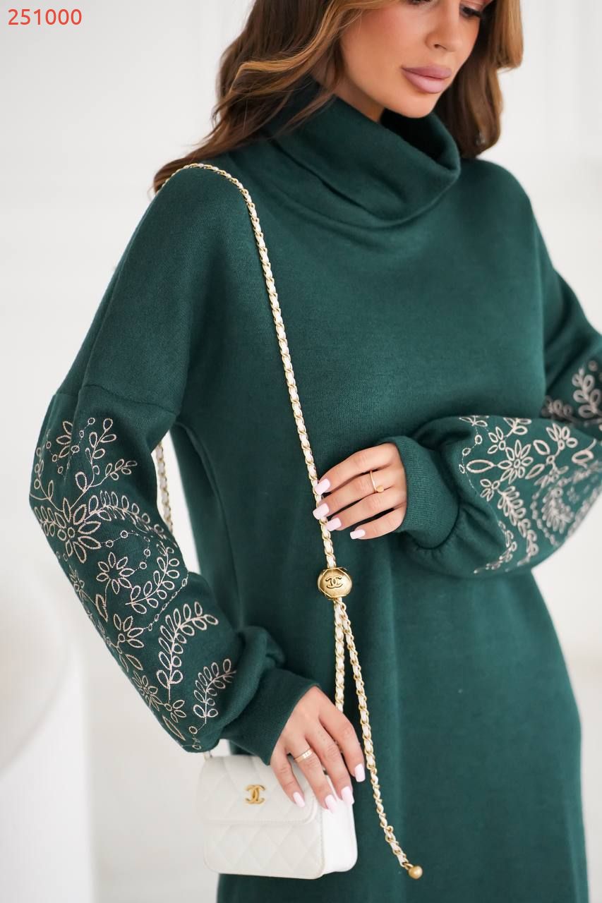 Трикотажна сукня з високим горлом і вишитими рукавами – ідеальне поєднання тепла та елегантності.