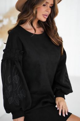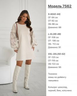 Сукня прямого крою з акцентом на об’ємних рукавах. Довжина вище коліна робить силует легким і сучасним,