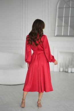 Довгі рукави з манжетами надають образу ніжності, а струмлива тканина красиво грає на світлі, створюючи ефект дорогоцінного шовку.