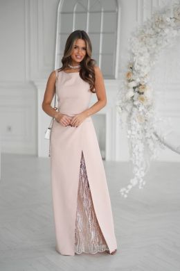 Елегантна сукня з гладкої костюмної тканини з розкішною мереживною вставкою, прикрашеною глітером.