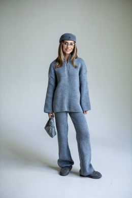 Затишний костюм із м'якої щільної пряжі з ідеальною посадкою. Вільний светр на блискавці та прямі штани створюють стильний та розслаблений силует. Підходить для міста, подорожей та відпочинку.