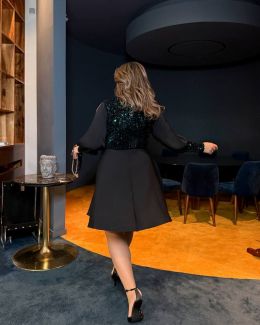 Тканина: верх - оксамит, розшитий паєтками (стрейчевий). Низ – софт -шовк чорного кольору.