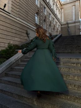 Довжина 143см, одягається на запах. Ідеальна посадка. Спідниця-напівсонце – не повнить. Легке, приємне до тіла. Прикрашення- паси - Тренд цього сезону. Вони роблять сукню повітряною , додають шарму