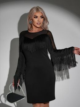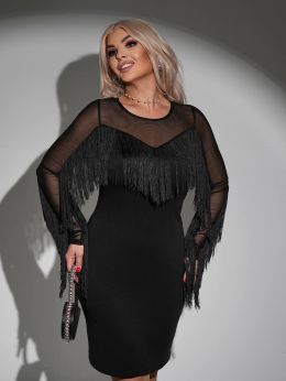 Стильна сукня, виготовлена з комфортної, еластичної тканини, м'яко облягає, не сковує рухи. Сітка на рукавах та декольте, м'яка та приємна до тіла, не колеться. Бахрома красиво рухається при кожному кроці, створюючи динаміку та святковий настрій.