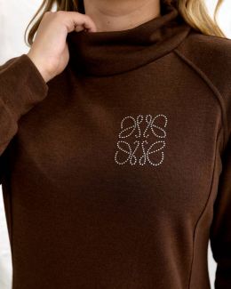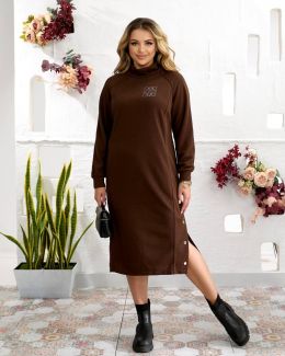 Сукня вільного крою, на грудях- прикраса зі страз, рукав реглан, з кишенями, знизу з розрізами на кнопках.