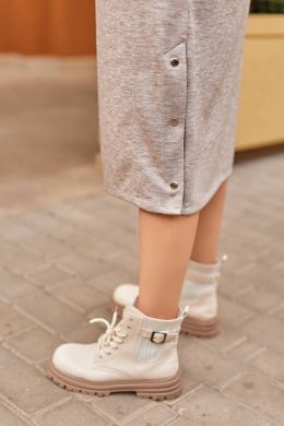 Сукня вільного крою, на грудях- прикраса зі страз, рукав реглан, з кишенями, знизу з розрізами на кнопках.