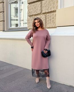 Осіннє прогулянкове плаття з довгим рукавом. Сукні, форма трапеція, довжина Міді, по низу сукні та низу рукава мереживо.