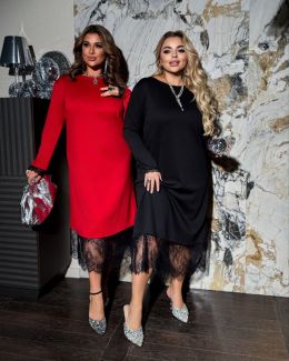 Осіннє прогулянкове плаття з довгим рукавом. Сукні, форма трапеція, довжина Міді, по низу сукні та низу рукава мереживо.