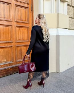 Осіннє прогулянкове плаття з довгим рукавом. Сукні, форма трапеція, довжина Міді, по низу сукні та низу рукава мереживо.