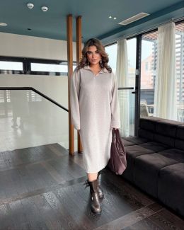 Осінньо-зимова тепла прогулянкова сукня. Сукня, довжина нижче коліна, з довгим рукавом, комір стояка, попереду змійка