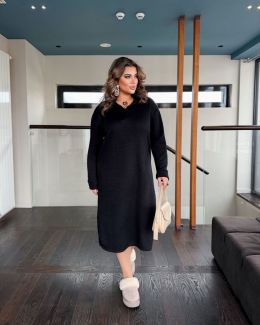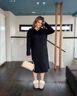 Осінньо-зимова тепла прогулянкова сукня. Сукня, довжина нижче коліна, з довгим рукавом, комір стояка, попереду змійка
