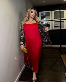 Сукня обьем грудей одягається до 124, талія 130, бедра 140