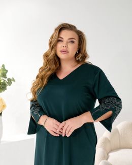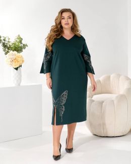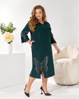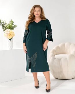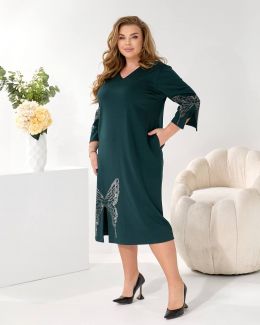 Представляємо елегантну сукню міді, виконану у вільному, прямому крої з V-подібним вирізом, що гарантує ідеальну посадку на будь-яку фігуру.