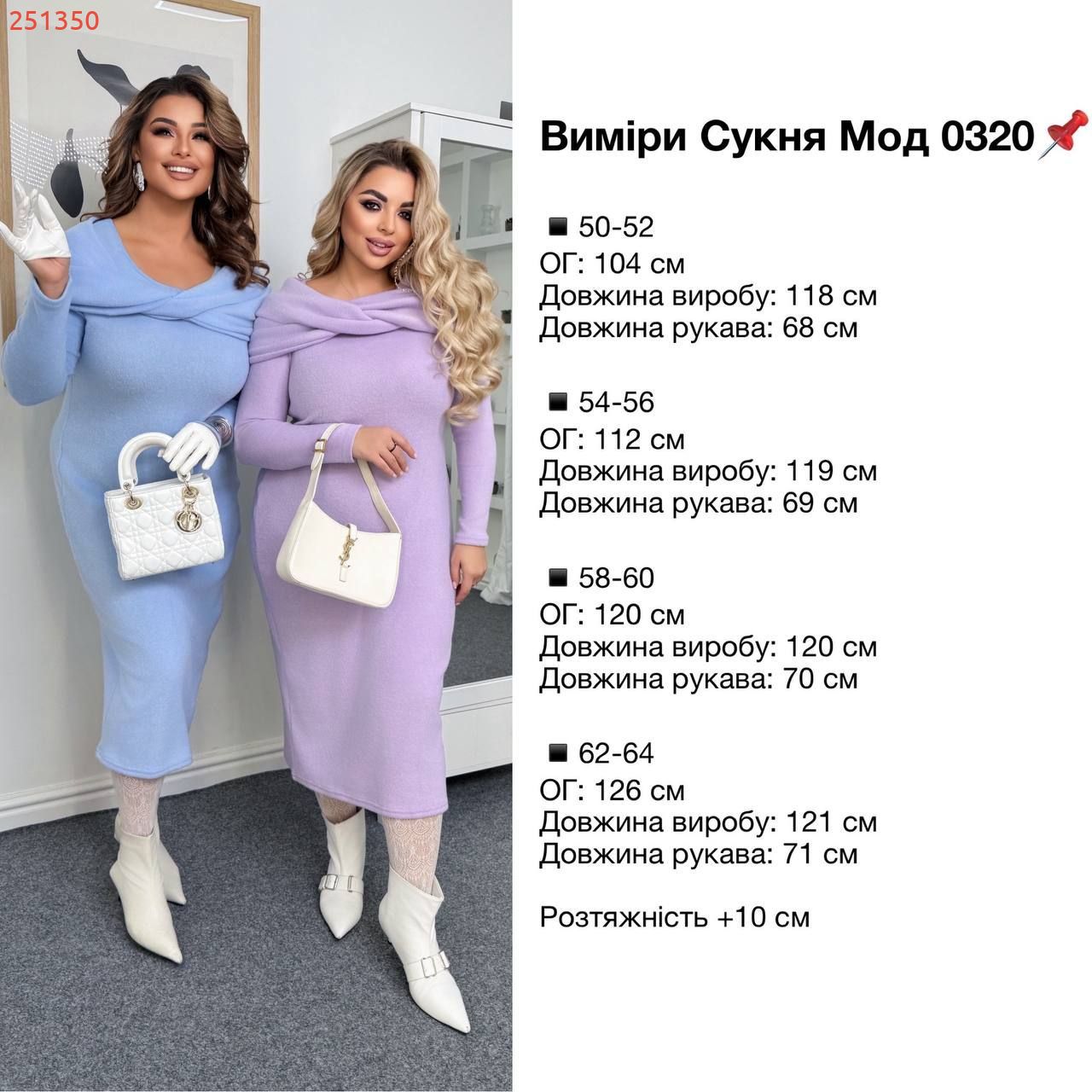 Модель має силует, що облягає, довжиною міді, підкреслюючи фігуру. Верх прикрашений оригінальним коміром-хомутом, який м'яко драпірується і надає образу жіночності та затишку. Рукави довгі, без манжет. Елегантний, але комфортний повсякденний образ у стилі casual chic.