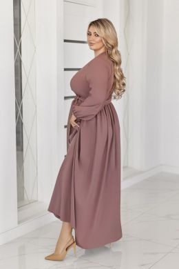 Неймовірно жіночна довга сукня у вечірньому стилі із софта (легка тканина. розтяжності немає). Ліф сукні виконано на запАх. Рукави довгі, на резинці по низу. Талія відрізна, зібрана на резинку. Спідниця форми сонцекльош. Пояс із основної тканини в комплекті. Застібок, кишень немає.